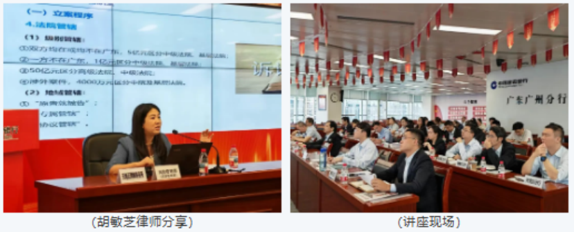 胡敏芝律师以案说法,讲解了诉讼流程、三类特殊诉讼(债权人撤销之诉、代位权诉讼、第三人撤销之诉)、在建工程抵押及应收账款质押等常见诉讼疑难问题、诉讼与仲裁区别,提出风险防范措施。