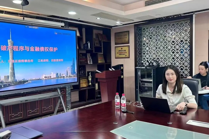 2025年9月17日下午,天地正律师所应邀为广州金控资本管理有限公司、广州立根小额再贷款股份有限公司、广州市公恒资产经营有限公司开展《破产程序与金融债权保护》讲座。其公司领导及业务骨干参加。天地正律师所企业重整清算中心业务三部部长田雅雯律师、主任助理江帆律师主讲。