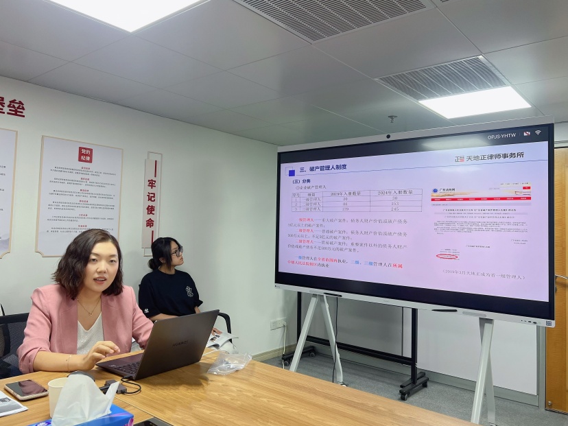2025年9月12日下午,天地正律师所应邀为广州广永投资管理有限公司开展《破产程序与金融债权保护》讲座。其公司领导及业务骨干近30人参加。天地正副主任郭敏律师、主任助理江帆律师主讲。